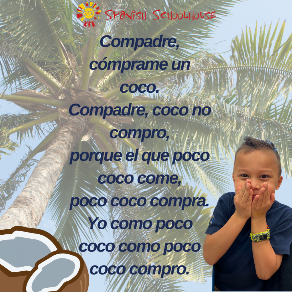 Compadre, cómprame un coco. Compadre, coco no compro, porque el que poco coco come, poco coco compra. Yo como poco coco como poco coco compro.